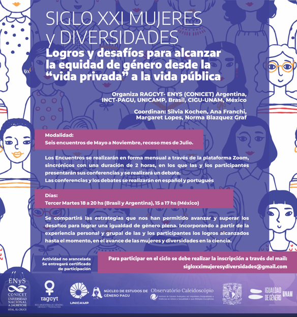 La Unidad Ejecutora de Estudios en Neurociencias y Sistemas Complejos (ENyS, CONICET-Hospital El Cruce-Universidad Nacional Arturo Jauretche) participa en la organización del ciclo de encuentros “Siglo XXI: Mujeres y Diversidades”, con el objetivo de promover el intercambio y la reflexión en torno a los logros y desafíos para alcanzar la equidad de género, desde la vida privada hasta la vida pública.